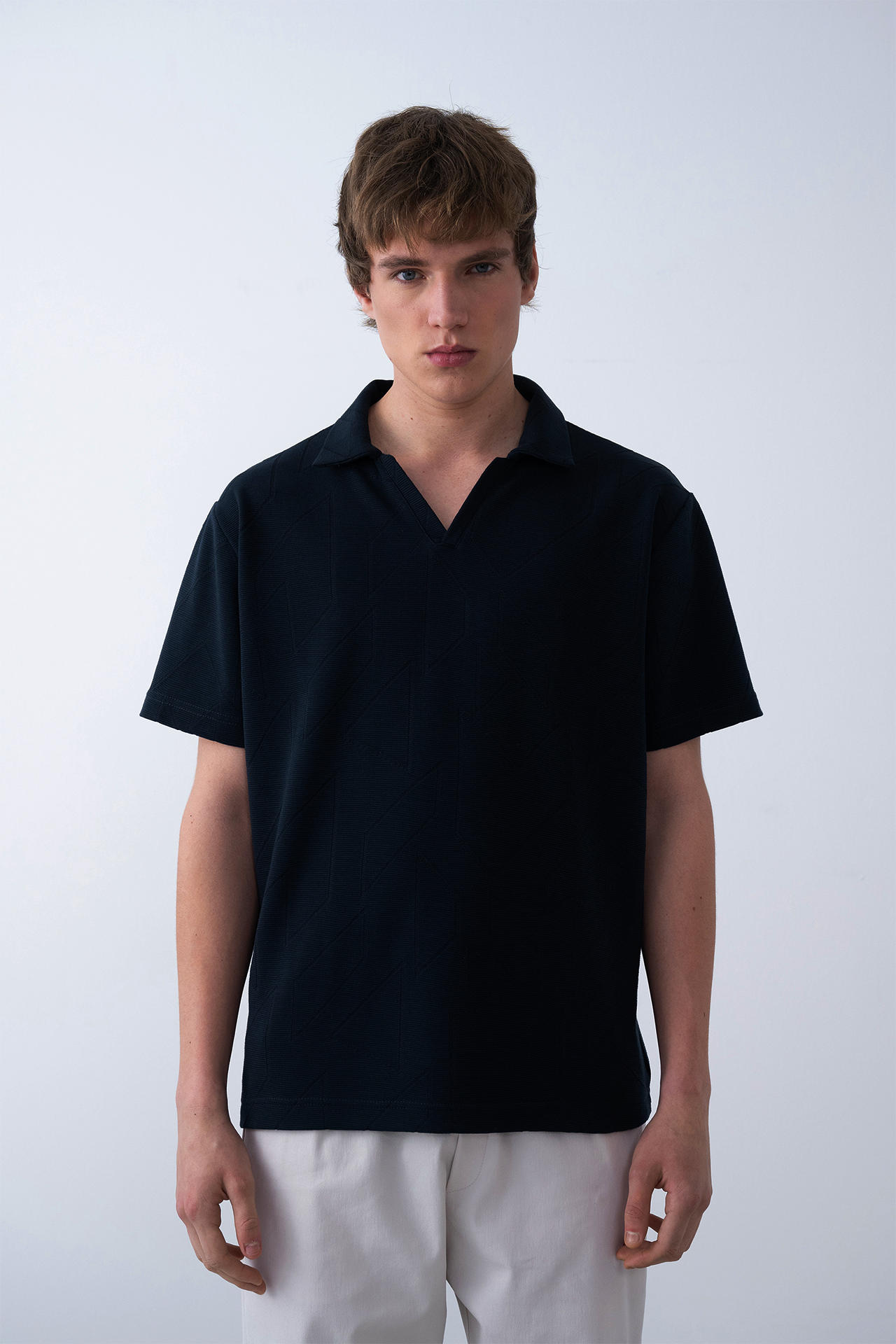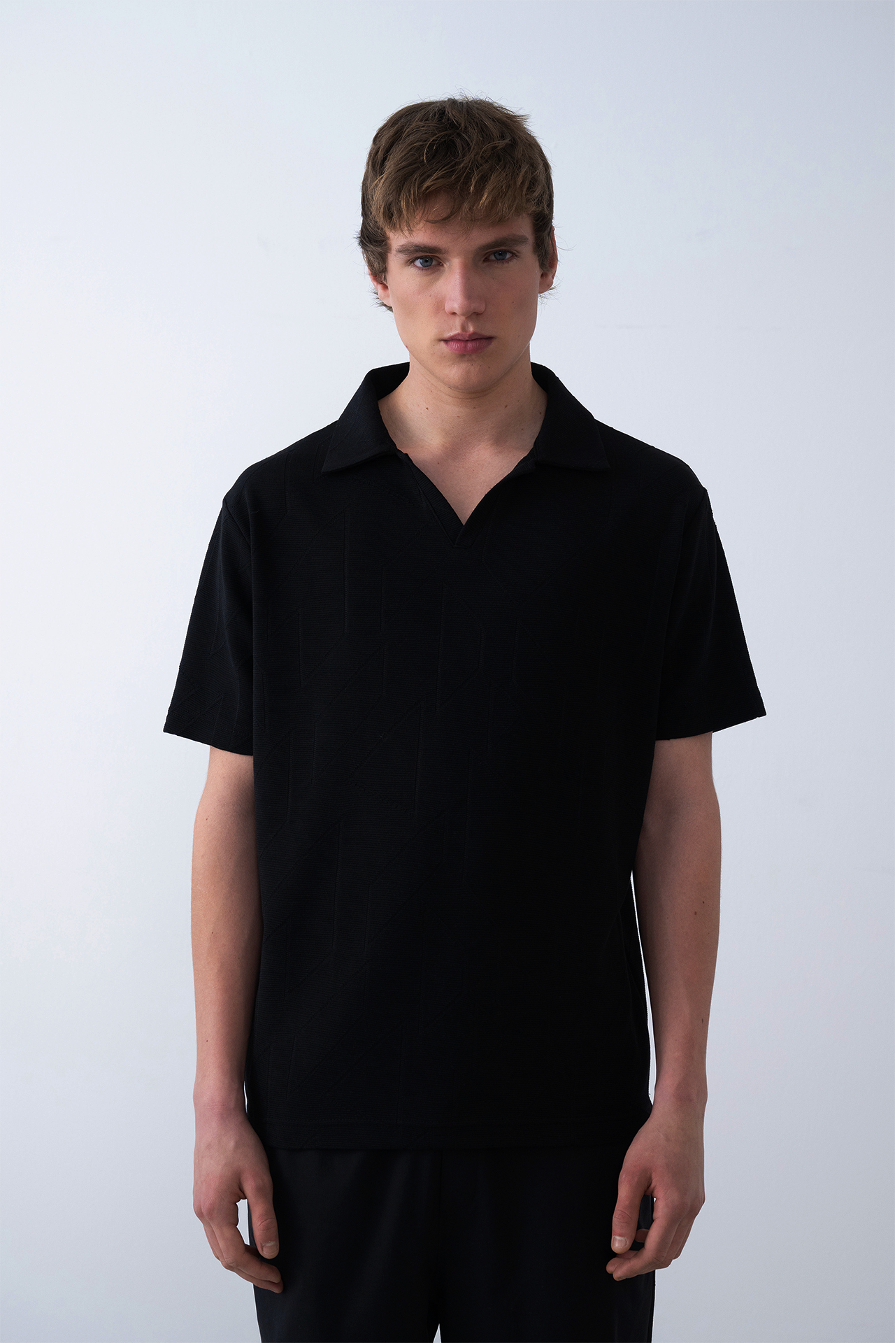 Sleek yet breathable, the Geometric Knit Polo brings texture to minimal design.