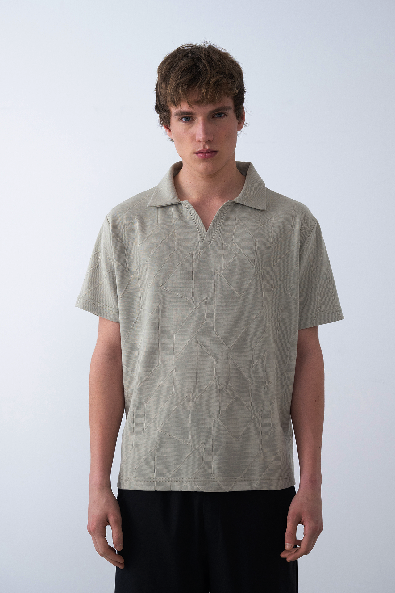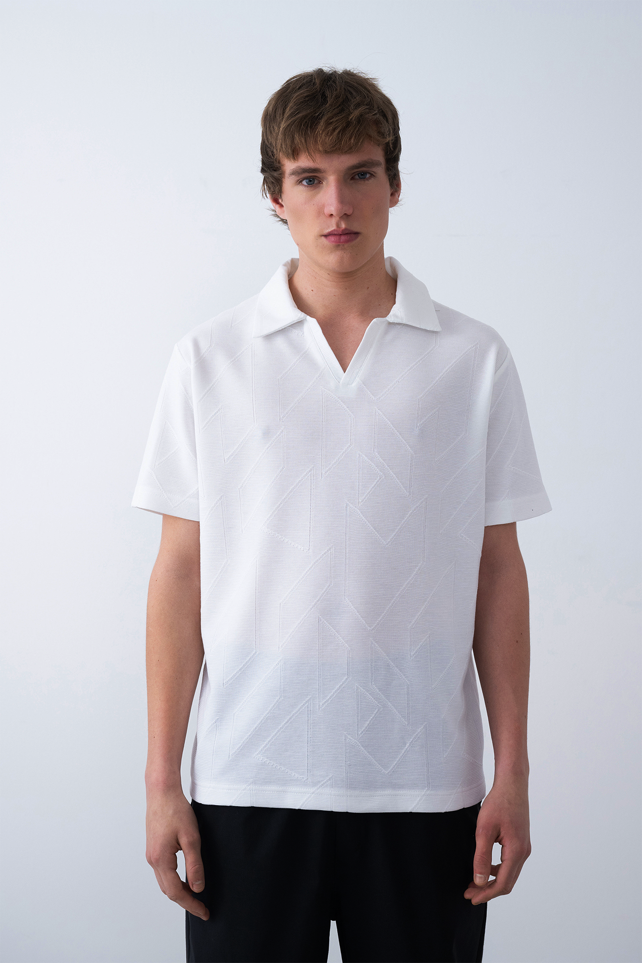 Featuring a tonal geometric pattern, open collar, and straight hem, this polo is made for effortless style in warm climates.
