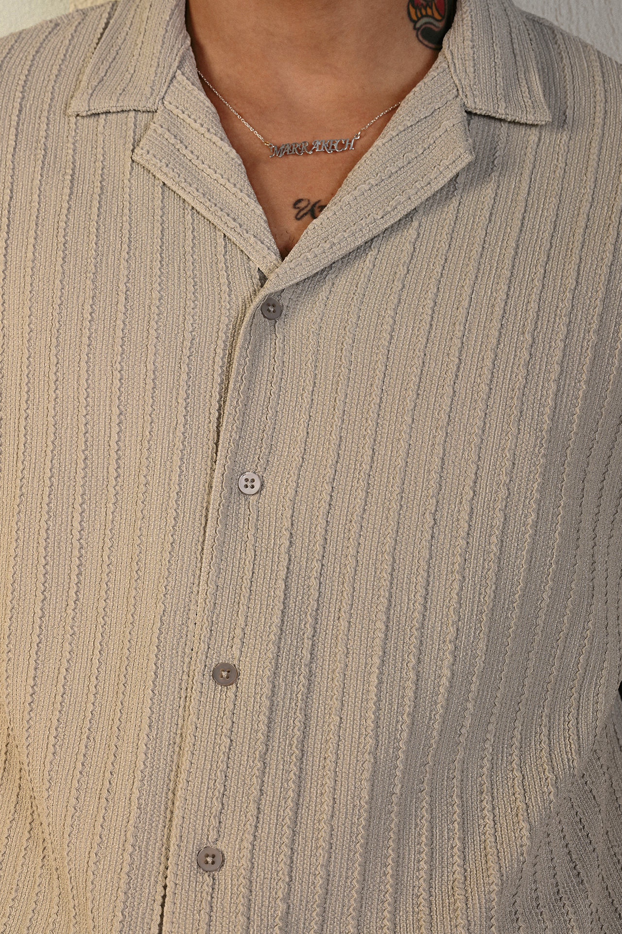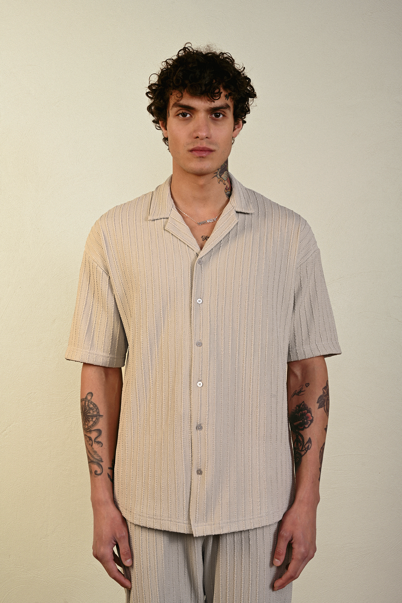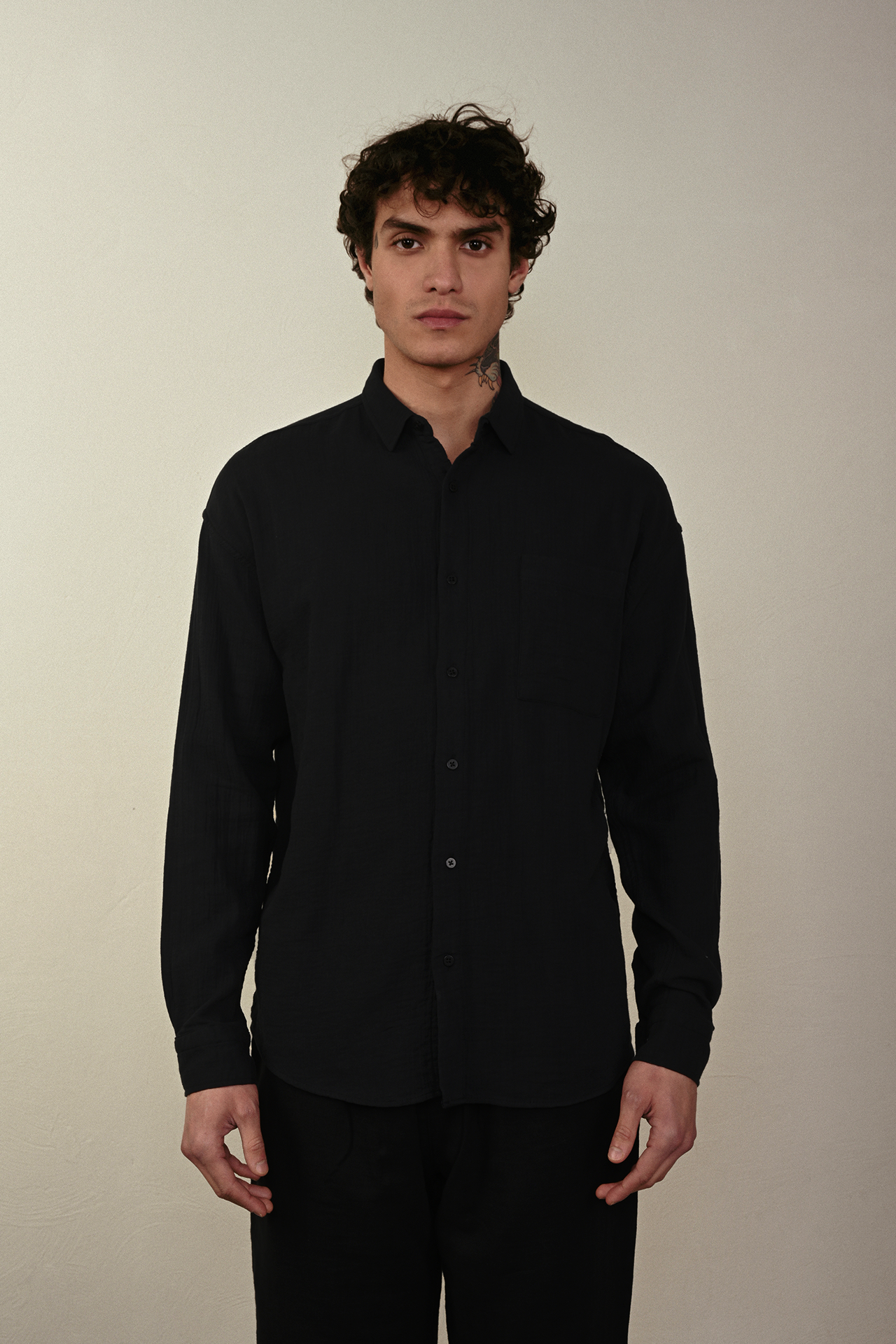The Textured Cotton Shirt combines relaxed structure with a lived-in softness that feels just right from day one. Designed with a classic collar, chest pocket, and button front, it’s cut from airy crinkled cotton for a breathable, lightly textured finish.
