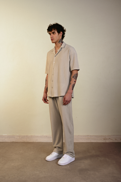 Naturally crinkled cotton texture hides creases and keeps things cool.