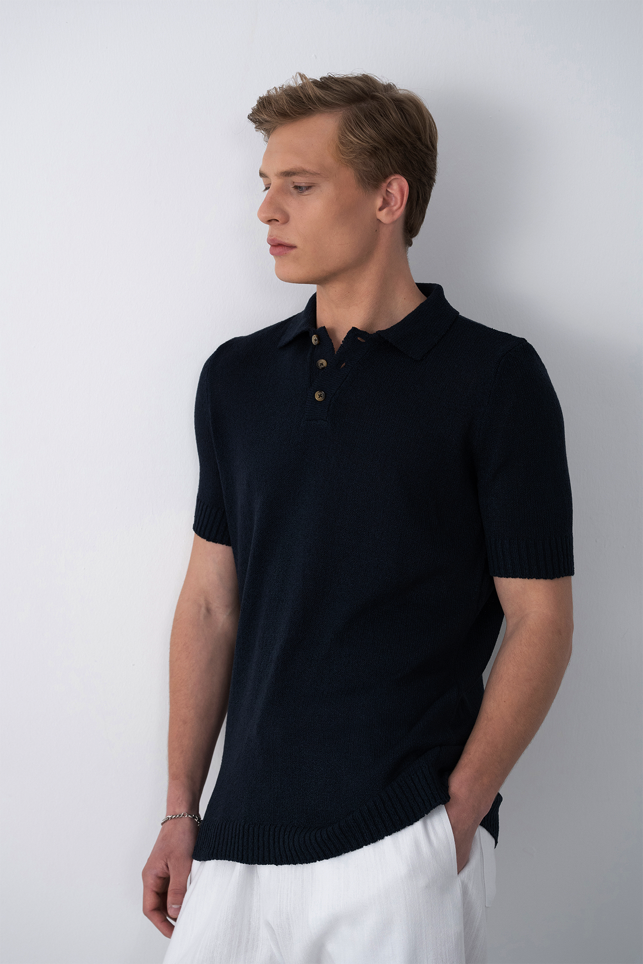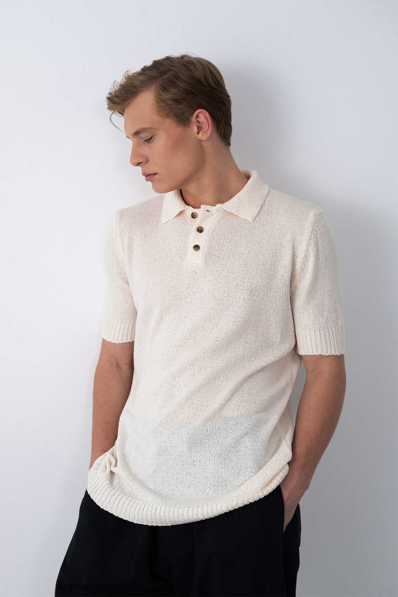 The Textured Knit Polo blends breathable structure with retro-inspired elegance. Featuring a three-button placket, ribbed trims, and an airy knit construction, this short-sleeve polo gives you a polished look without sacrificing comfort.